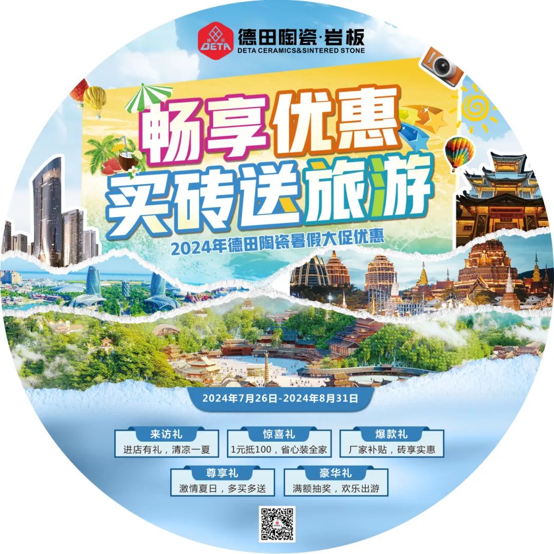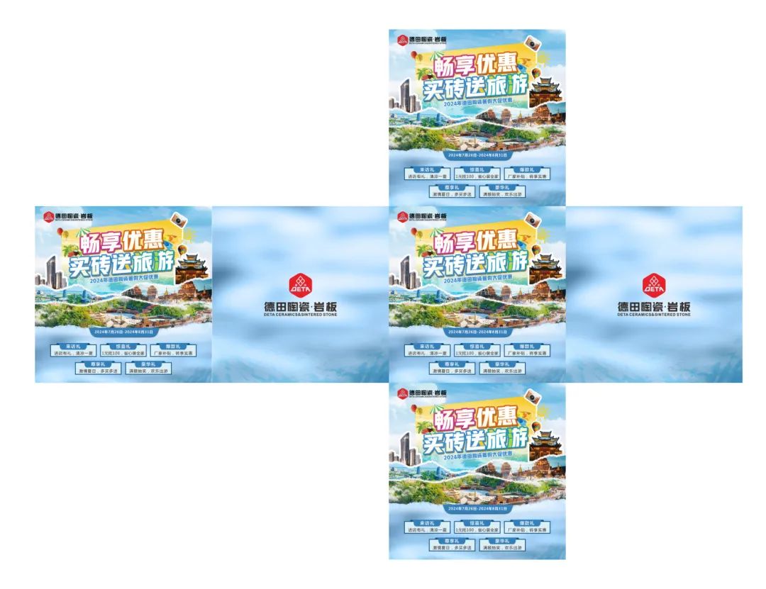 為了迎接暑期銷售旺季節點,更好地配合廣大經銷商家人們開展促銷活動,營造濃郁的促銷氛圍,搶占市場,德田陶瓷發起“暢享優惠,買磚送旅游”暑期促銷活動,并推出系列促銷方案及物料,含拱門、單張、展架、貼紙等整套源文件。